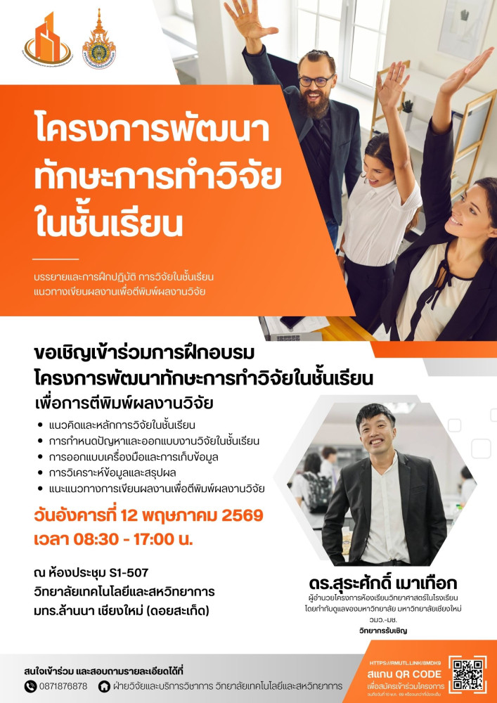 โครงการพัฒนาทักษะการทำวิจัยในชั้นเรียนเพื่อการตีพิมพ์ผลงานวิจัย