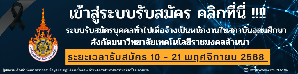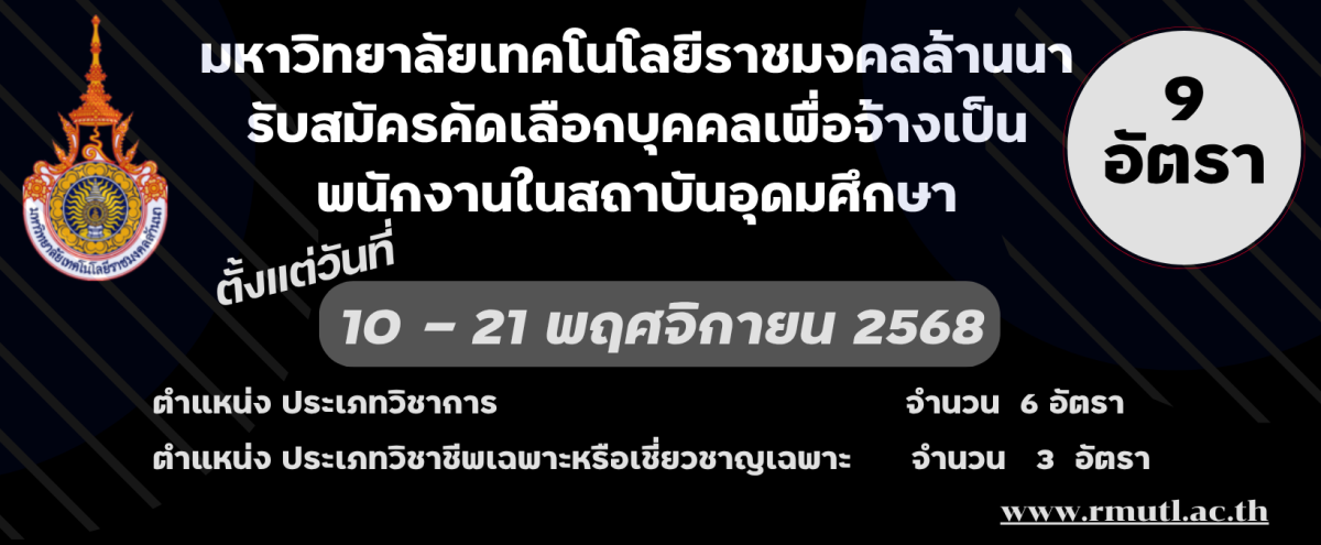 มหาวิทยาลัยเทคโนโลยีราชมงคลล้านนา ประสงค์จะรับสมัครคัดเลือกบุคคลทั่วไป