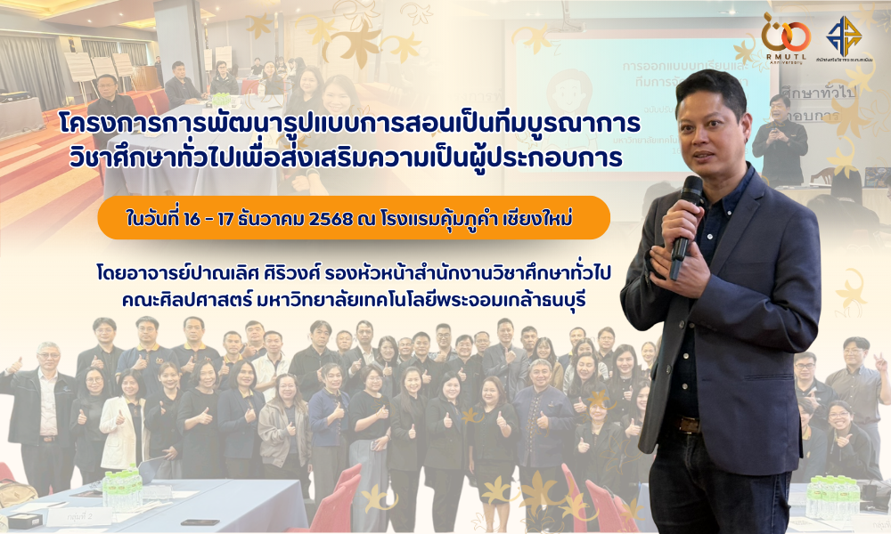 วันที่ 16-17 ธันวาคม 2568 สำนักส่งเสริมวิชาการและงานทะเบียน ได้ดำเนินโครงการการพัฒนารูปแบบการสอนเป็นทีมบูรณาการวิชาศึกษาทั่วไป เสริมสร้างความเป็นผู้ประกอบการ ณ โรงแรมคุ้มภูคำ จังหวัดเชียงใหม่