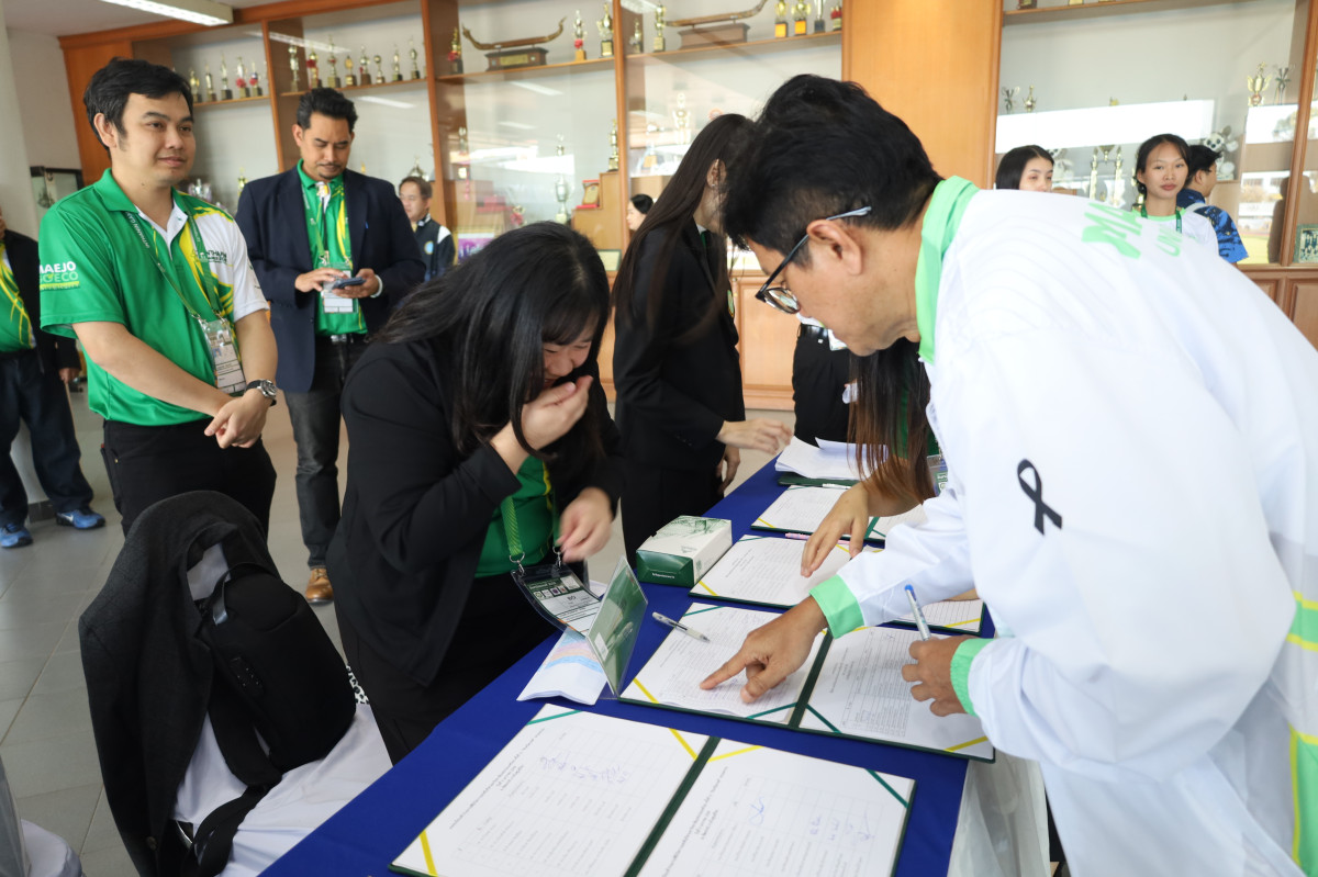 สำหรับการจัดการแข่งขันกีฬามหาวิทยาลัยแห่งประเทศไทย ครั้งที่ 52 มหาวิทยาลัยวลัยลักษณ์รับธงเจ้าภาพต่อจากมหาวิทยาลัยแม่โจ้ โดยมี ศ.ดร.สมบัติ ธำรงธัญวงศ์ อธิการบดีมหาวิทยาลัยวลัยลักษณ์ เป็นผู้แทนรับมอบธง