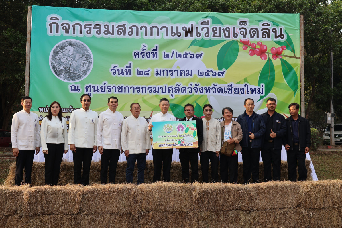 วันที่ 28 มกราคม 2569 รองศาสตราจารย์ ดร.ประชา ยืนยงกุล รองอธิการบดีฝ่ายวิชาการและกิจการนักศึกษาพร้อมด้วยผู้ช่วยอธิการบดี มหาวิทยาลัยเทคโนโลยีราชมงคลล้านนา ร่วมกิจกรรมสภากาแฟเวียงเจ็ดลิน ครั้งที่ 2/2569 ณ บริเวณลานจอดรถศูนย์ราชการกรมปศุสัตว์จังหวัดเชียงใหม่ ซึ่งมีหน่วยงานกรมปศุสัตว์ในพื้นที่จังหวัดเชียงใหม่ ร่วมเป็นเจ้าภาพในครั้งนี้ เพื่อเป็นการประชาสัมพันธ์ หารือและแลกเปลี่ยนข้อคิดเห็น ตลอดจนการประชาสัมพันธ์ข้อมูลข่าวสารระหว่างหน่วยงานในพื้นที่เวียงเจ็ดลิน โอกาสนี้ แนะนำผู้บริหารและประชาสัมพันธ์งานพิธีพระราชทานปริญญาบัตร ครั้งที่ 5 ประจำปีการศึกษา 2567 ซึ่งจะจัดขึ้นในระหว่างวันที่ 6-9 กุมภาพันธ์ 2569 และเจ้าภาพในครั้งต่อไป มหาวิทยาลัยเชียงใหม่ จะรับหน้าที่เป็นเจ้าภาพซึ่งจะจัดขึ้นในวันที่ 25 กุมภาพันธ์ 2569