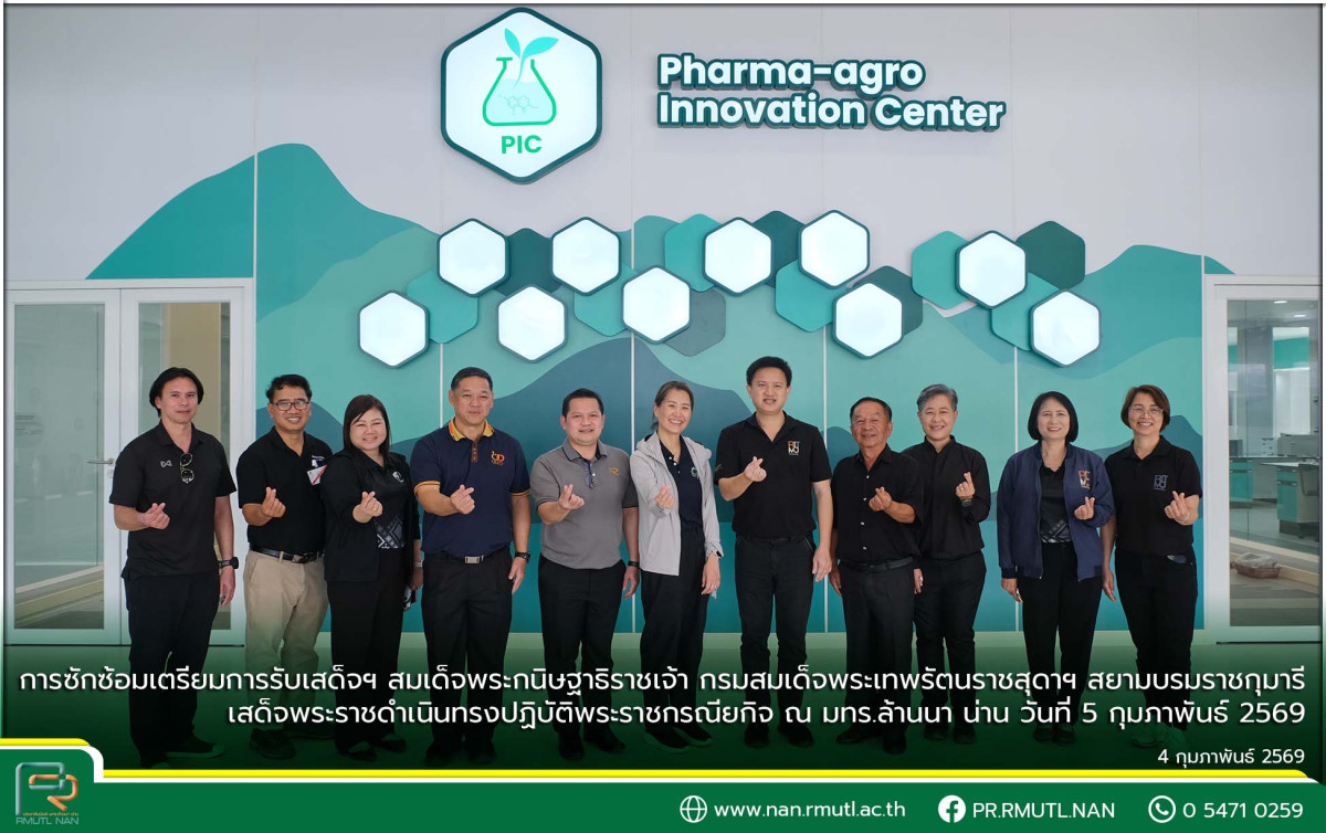 วันพุธที่ 4 กุมภาพันธ์ 2569 เวลา 13.00 น. ผศ.ดร.อรรณพ ทัศนอุดม รักษาราชการแทนอธิการบดี มทร.ล้านนา พร้อมคณะ ได้แก่ รศ.ดร.คมสัน อำนวยสิทธิ์ อดีตรองอธิการบดี มทร.ล้านนา , ผศ.ดร.สุภาวดี ศรีแย้ม รองอธิการบดีฝ่ายวิจัยและนวัตกรรม , ผศ.ดร.อภิชาติ ชิดบุรี ผู้อำนวยการสถาบันวิจัยเทคโนโลยีเกษตร และผู้บริหาร มทร.ล้านนา น่าน ได้ลงพื้นที่เพื่อซักซ้อมเตรียมการรับเสด็จฯ สมเด็จพระกนิษฐาธิราชเจ้า กรมสมเด็จพระเทพรัตนราชสุดาฯ สยามบรมราชกุมารี เสด็จพระราชดำเนินมาทรงปฏิบัติพระราชกรณียกิจ ณ มทร.ล้านนา น่าน วันที่ 5 กุมภาพันธ์ 2569 ในการทรงเปิดอาคารศูนย์ Pharma-agro Innovation Center (PIC) ของศูนย์วนเกษตร-พฤกษเภสัช (PAD) มทร.ล้านนา น่าน