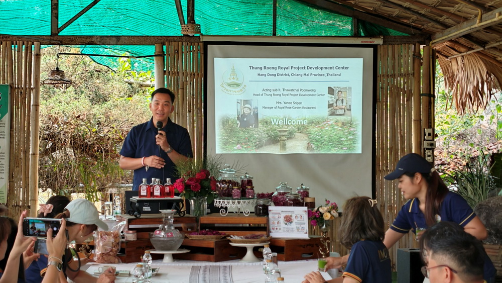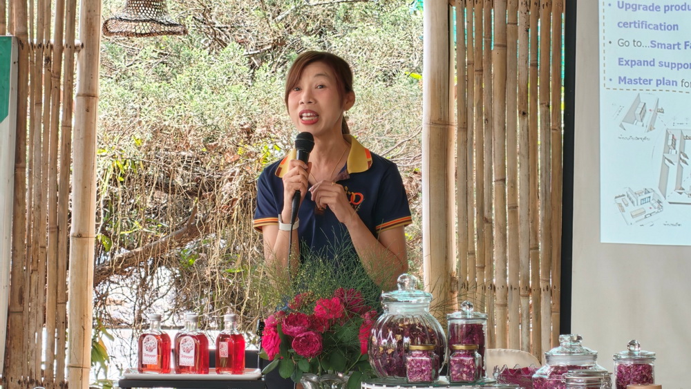ในโอกาสนี้ คณะนักวิจัยได้ติดตามความก้าวหน้าของโครงการสำคัญที่สร้างประโยชน์อย่างเป็นรูปธรรมแก่ชุมชน อาทิ โครงการพัฒนาสถานที่ผลิตและยกระดับมาตรฐานการแปรรูปผลิตภัณฑ์ของสวนกุหลาบหลวงห้วยผักไผ่ ซึ่งมุ่งเพิ่มศักยภาพการผลิตให้ได้มาตรฐาน พร้อมสร้างโอกาสทางเศรษฐกิจแก่เกษตรกรและชุมชนโดยรอบ