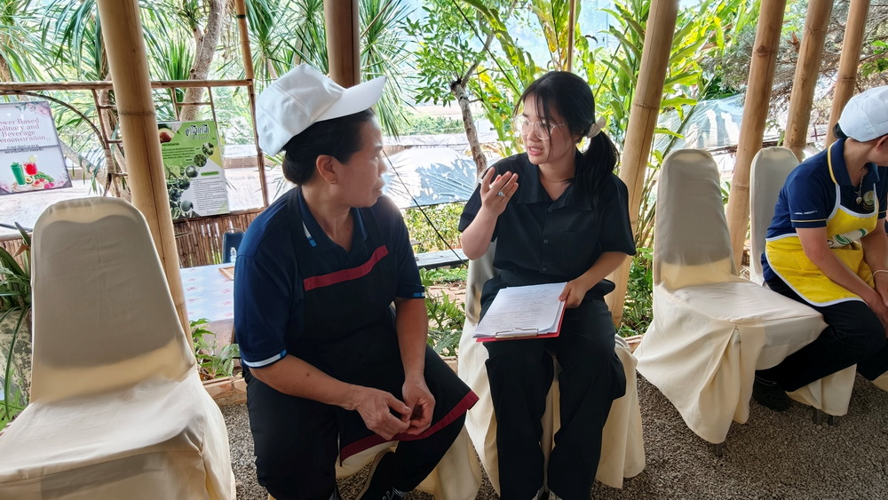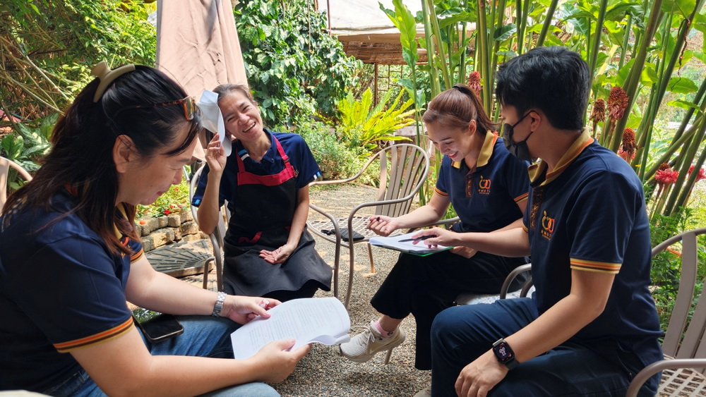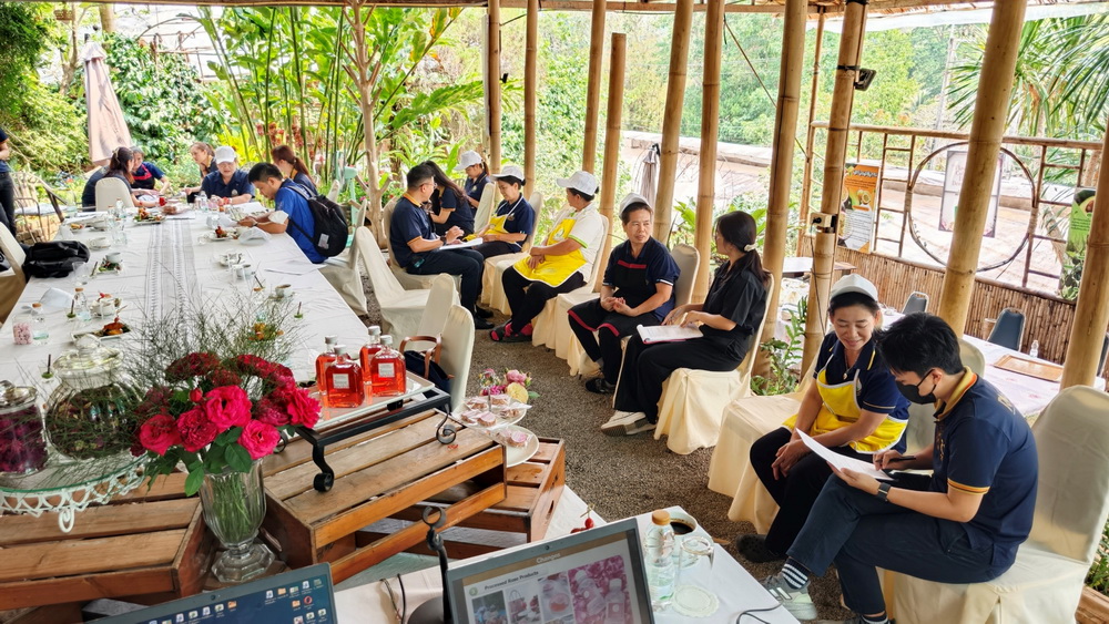 นอกจากนี้ ทีมงานยังร่วมแลกเปลี่ยนแนวทางพัฒนาชุมชนแบบครบวงจร ตั้งแต่ต้นน้ำถึงปลายน้ำ ส่งเสริมการใช้ทรัพยากรอย่างคุ้มค่า ลดของเสียตามแนวคิด Zero Waste พัฒนาบรรจุภัณฑ์ และขยายช่องทางการตลาด เพื่อให้ชุมชนสามารถพึ่งพาตนเองได้อย่างมั่นคงและยั่งยืน