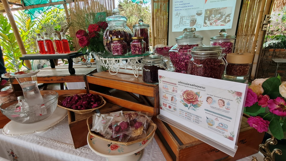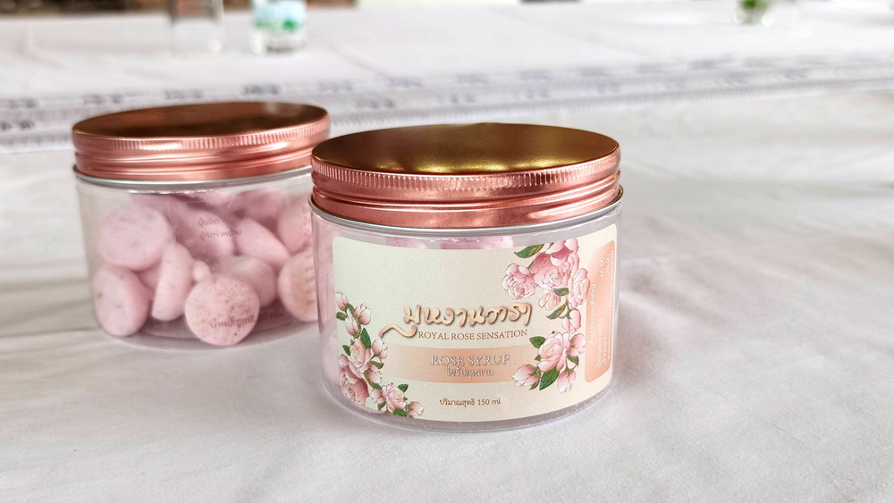 อีกหนึ่งผลงานเด่น คือ โครงการต่อยอดน้ำสกัดกุหลาบ (Rose Hydrosol) ด้วยเทคนิคการผลิตเม็ดบีดส์ไซรัปกุหลาบ โดยประยุกต์ใช้นวัตกรรมการห่อหุ้มสารเพื่อเพิ่มมูลค่าผลผลิตท้องถิ่น พร้อมพัฒนาผลิตภัณฑ์ต้นแบบหลากหลายรูปแบบ อาทิ กัมมี่กุหลาบ ขนมเมอแรงก์สูตรลดความหวาน และข้าวเกรียบผสมกลีบกุหลาบ เพื่อเตรียมต่อยอดสู่ตลาดเชิงพาณิชย์ สร้างรายได้และเสริมความเข้มแข็งให้เศรษฐกิจฐานราก