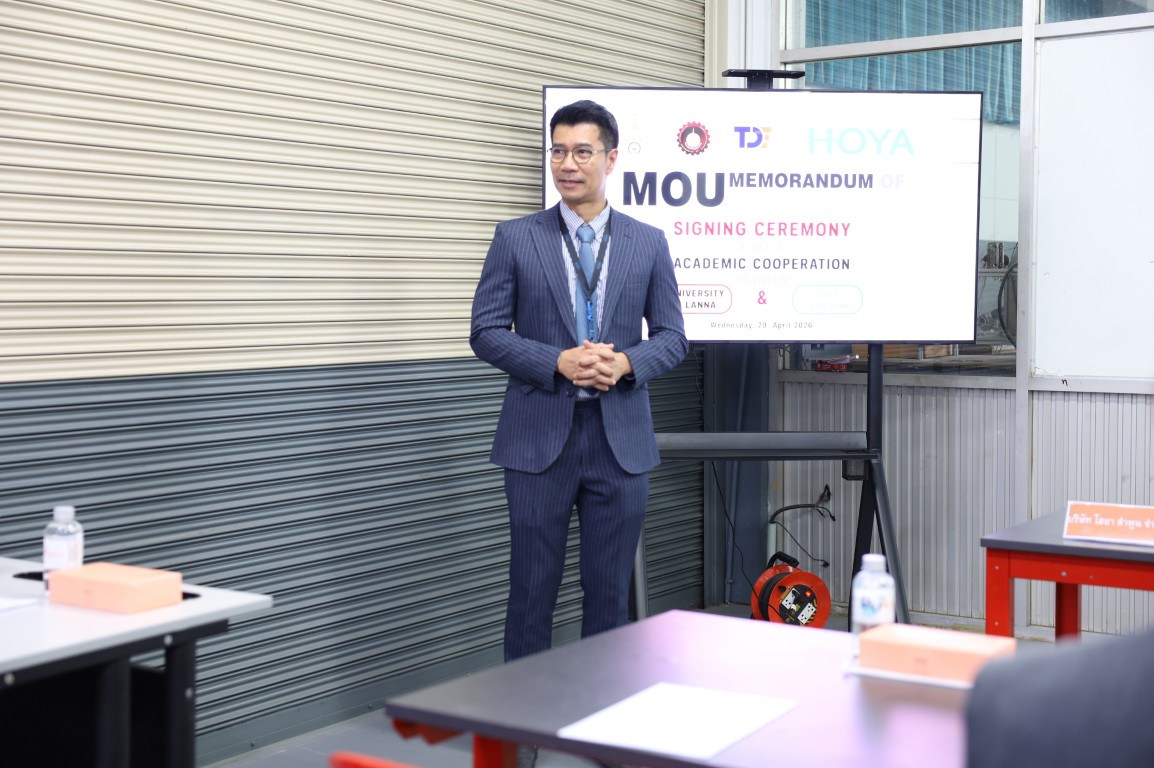 พิธีลงนามจัดขึ้นเมื่อวันที่ 29 เมษายน 2569 ณ หลักสูตรวิศวกรรมแม่พิมพ์และเครื่องมือ โดย ผู้ช่วยศาสตราจารย์นพพร พัชรประกิติ คณบดีคณะวิศวกรรมศาสตร์ ร่วมลงนามกับ นายปิยะ เนยคำ ประธานบริษัท โฮยา ลำพูน จำกัด (HLAM) พร้อมด้วยคณะผู้บริหาร คณาจารย์ และผู้แทนจากทั้งสองหน่วยงานเร่วมเป็นสักขีพยาน