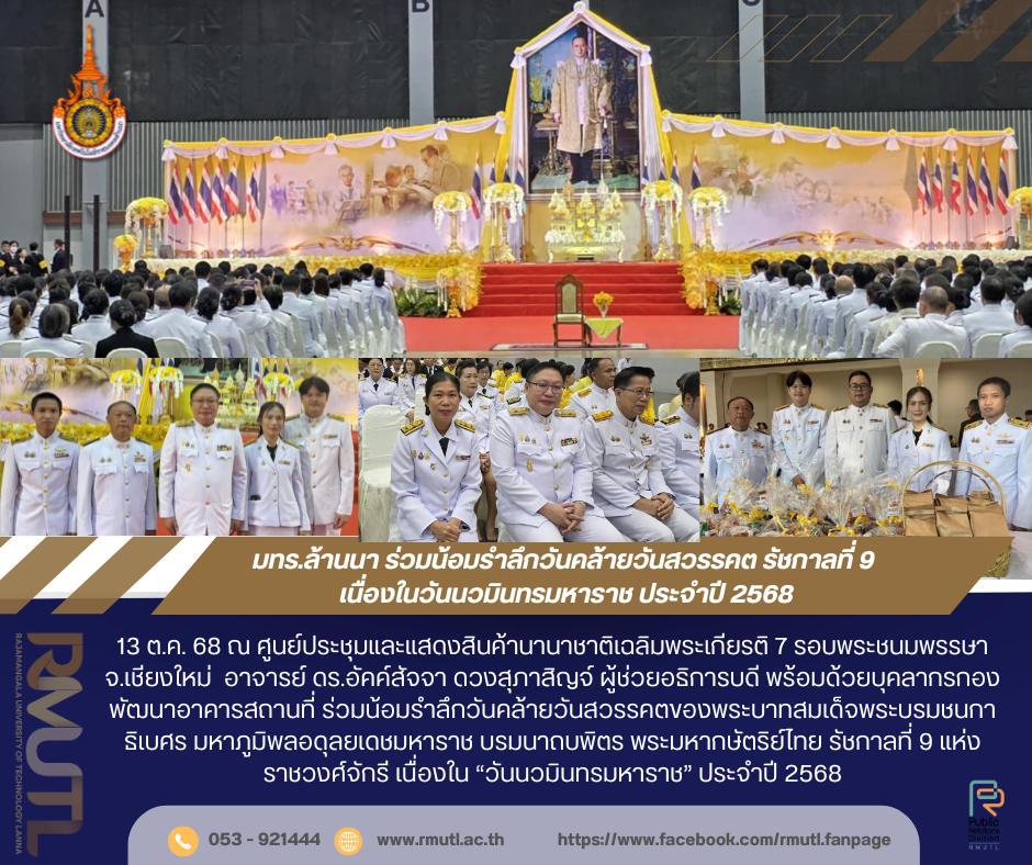 มทร.ล้านนา ร่วมน้อมรำลึกวันคล้ายวันสวรรคต รัชกาลที่ 9 เนื่องในวันนวมินทรมหาราช ประจำปี 2568