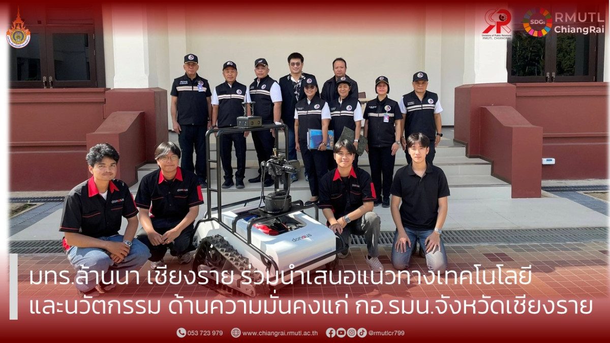 ทั้งนี้ มหาวิทยาลัยเทคโนโลยีราชมงคลล้านนา เชียงราย ได้นำเสนอแนวทางการประยุกต์ใช้เทคโนโลยีและนวัตกรรมเพื่อสนับสนุนภารกิจด้านความมั่นคง อาทิ การป้องกันและบรรเทาสาธารณภัย การจัดการน้ำท่วม ไฟป่า ปัญหาฝุ่นละออง PM2.5 แผ่นดินไหว การหลบหนีเข้าเมือง ปัญหายาเสพติด และภารกิจอื่น ๆ ที่เกี่ยวข้อง ตัวอย่างนวัตกรรมที่นำเสนอ ได้แก่ ระบบแอปพลิเคชันการจัดการการเผาในที่โล่ง ระบบโดรนตรวจการณ์และเฝ้าระวังไฟป่า โดรนดับไฟป่า โดรนปลูกป่าและตรวจวัดค่าฝุ่น PM2.5 โดรนขนส่งอาหารในสถานการณ์ภัยพิบัติ โดรนส่งอุปกรณ์ปฐมพยาบาล (First Aid) หุ่นยนต์ดูแลรักษาความปลอดภัย และหุ่นยนต์กวาดทุ่นระเบิด กิจกรรมดังกล่าวจัดขึ้น ณ ห้องประชุมพญาพิภักดิ์ ชั้นที่ 2 ศาลากลางจังหวัดเชียงราย ตำบลริมกก อำเภอเมืองเชียงราย จังหวัดเชียงราย