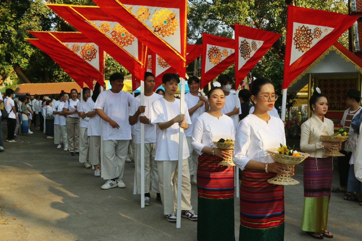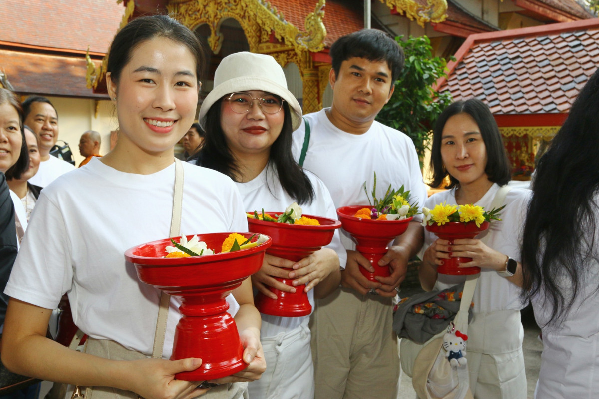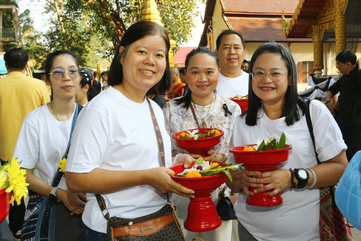 ภายในงานยังมีการ ถวายภัตตาหารเพลและจตุปัจจัยไทยทาน แด่พระภิกษุสงฆ์ พร้อมเปิดพื้นที่แห่งการแบ่งปันผ่านกิจกรรม “โรงทานกาดมั่ว” เชิญชวนพุทธศาสนิกชนและผู้เข้าร่วมงานร่วมรับประทานอาหารพื้นเมืองล้านนา ท่ามกลางบรรยากาศกาดล้านนาย้อนยุค และโรงทานจากคณะศรัทธาหลากหลายภาคส่วน สร้างทั้งความอิ่มบุญและอิ่มใจแก่ผู้ร่วมงาน