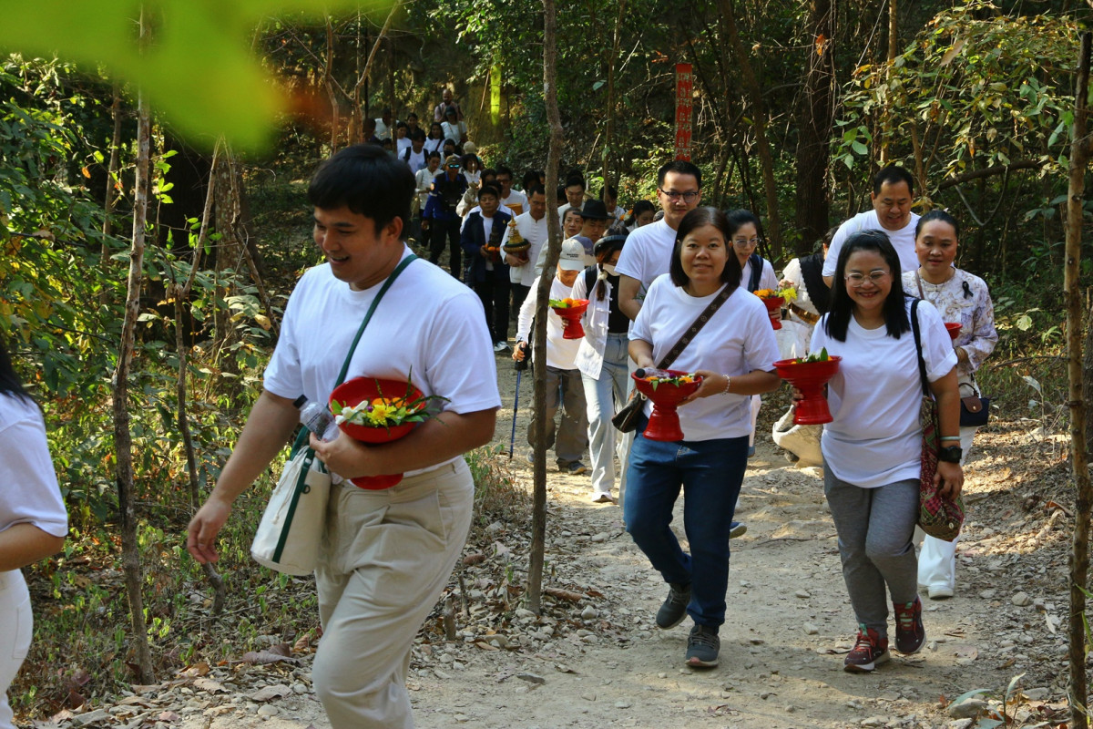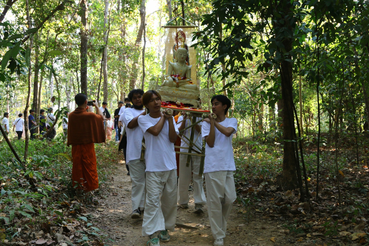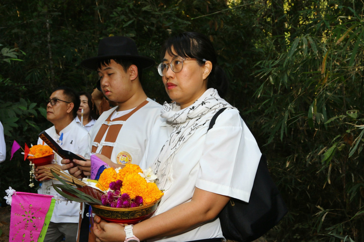 ในช่วงเช้า บรรยากาศเต็มไปด้วยความคึกคักและศรัทธา จากการแสดง “ตีกลองตึ่งนงล้านนา 4 จังหวัด” ซึ่งเป็นการรวมตัวของแม่ครูพ่อครูกลองสะบัดชัยที่หาชมได้ยาก การแสดงดังกล่าวได้รับการสนับสนุนจาก มหาวิทยาลัยราชภัฏเชียงใหม่ และ สำนักงานวัฒนธรรมจังหวัดเชียงใหม่ โดยเสียงกลองสะบัดชัยอันทรงพลังดังกึกก้องไปทั่วขุนเขา เปรียบเสมือนการถวายเป็นพุทธบูชา และสะท้อนอัตลักษณ์ศิลปวัฒนธรรมล้านนาอย่างงดงาม จากนั้นในเวลา 10.00 น. ได้มีการประกอบพิธีกรรมทางศาสนาอันสำคัญ ได้แก่ พิธีสืบชาตาหลวง เพื่อเสริมสิริมงคลและต่ออายุชีวิต ตามคติความเชื่อของชาวล้านนา ควบคู่กับพิธี บูชาพระธาตุ และการจัด ทอดผ้าป่าสามัคคี เพื่อสมทบกองทุนเฝ้าระวังไฟป่า 29 ชุมชนรอบพื้นที่ดอยสุเทพ อันสะท้อนถึงการบูรณาการมิติศาสนา วัฒนธรรม และการอนุรักษ์ทรัพยากรธรรมชาติอย่างยั่งยืน