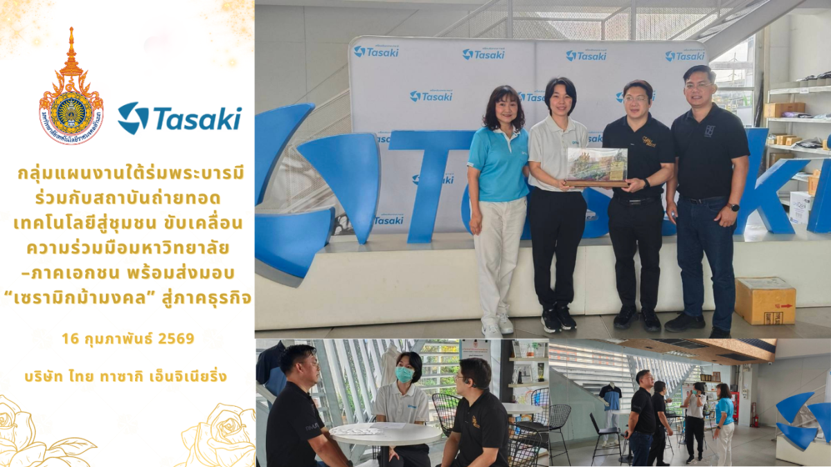 วันที่ 16 กุมภาพันธ์ 2569 ผู้ช่วยศาสตราจารย์ ดร.วรจักร์ เมืองใจ ผู้อำนวยการสถาบันถ่ายทอดเทคโนโลยีสู่ชุมชน และหัวหน้ากลุ่มแผนงานใต้ร่มพระบารมี ได้มอบหมายให้ อาจารย์นริศ กำแพงแก้ว อาจารย์คณะวิศวกรรมศาสตร์ ว่าที่ร้อยตรีเกรียงไกร ศรีประเสริฐ และนายสิงหล วิชายะ บุคลากรสถาบันถ่ายทอดเทคโนโลยีสู่ชุมชน เข้าหารือร่วมกับบริษัท ไทย ทาซากิ เอ็นจิเนียริ่ง เพื่อพัฒนาความร่วมมือระหว่างมหาวิทยาลัยและภาคเอกชนในด้านการต่อยอดผลงานวิจัยและงานบริการวิชาการสู่การใช้ประโยชน์เชิงพาณิชย์