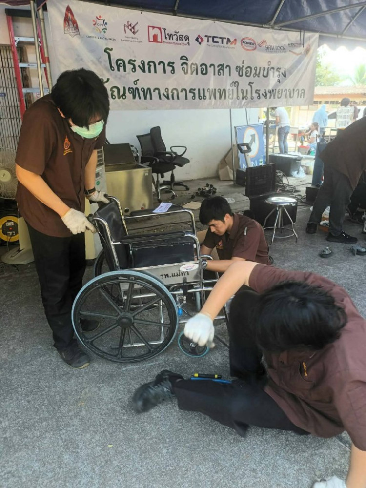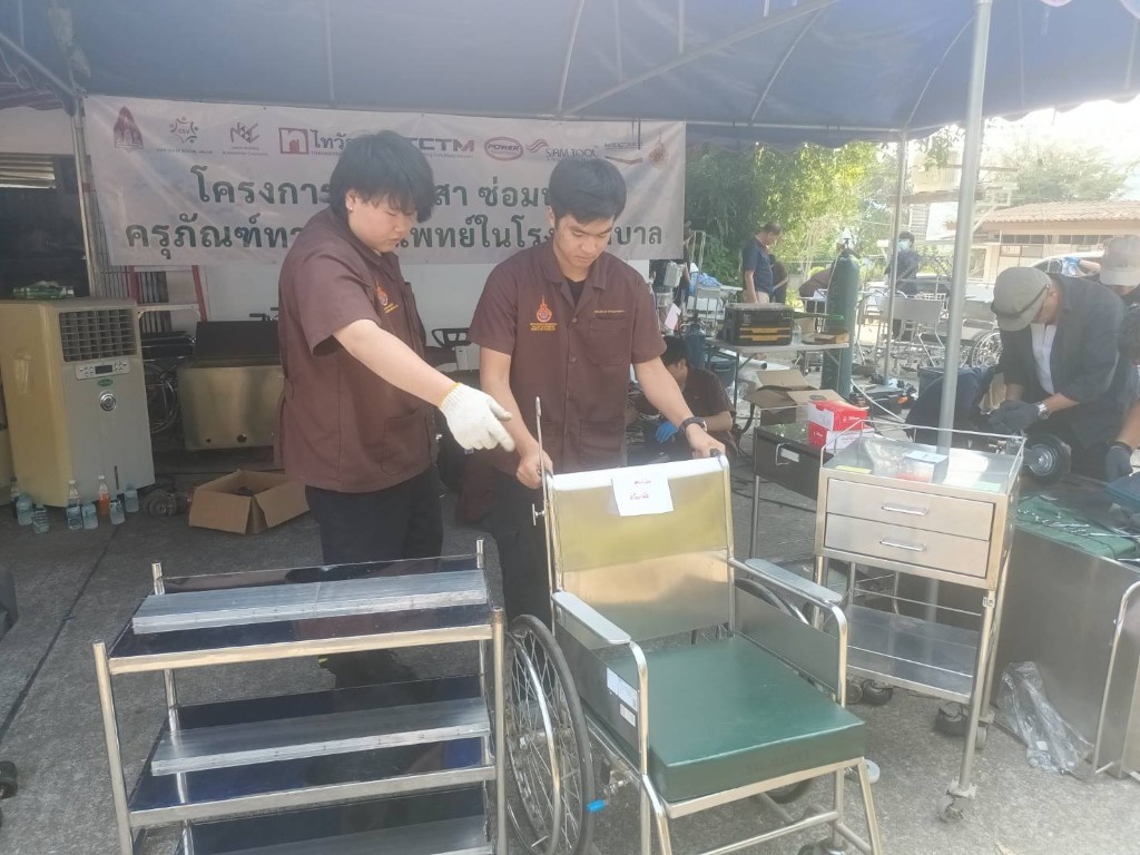 อาจารย์ศุภกาล ตุ้ยเต็มวงศ์ อาจารย์ประจำหลักสูตรเตรียมวิศวกรรมศาสตร์ วิทยาลัยเทคโนโลยีและสหวิทยาการ มหาวิทยาลัยเทคโนโลยีราชมงคลล้านนา นำนักศึกษาจัดกิจกรรมจิตอาสาลงพื้นที่ซ่อมแซมและบำรุงรักษาอุปกรณ์ทางการแพทย์ ณ โรงพยาบาลแม่ทา และโรงพยาบาลบ้านธิ จังหวัดลำพูน ตรวจเช็คและซ่อมแซมอุปกรณ์ที่ชำรุดจากการใช้งานหนัก รวมถึงอุปกรณ์ที่ขาดการบำรุงรักษาให้กลับมามีสภาพสมบูรณ์พร้อมใช้งานอีกครั้ง ประกอบด้วย อุปกรณ์ขนส่งอาหาร เสาแขวนน้ำเกลือ รถเข็นส่งอุปกรณ์ทางการแพทย์ ตู้เก็บของข้างเตียงผู้ป่วย เตียงผู้ป่วย และล้อเข็นรถเข็น รวมทั้งสิ้นกว่า 200 รายการ การดำเนินงานดังกล่าวไม่เพียงแต่ช่วยเพิ่มความปลอดภัยในการใช้งาน แต่ยังสามารถช่วยประหยัดงบประมาณแผ่นดินในการจัดซื้ออุปกรณ์ใหม่ทดแทนได้เป็นมูลค่ารวมหลายแสนบาท ระหว่างวันที่ 20 -21 กุมภาพันธ์ 2569