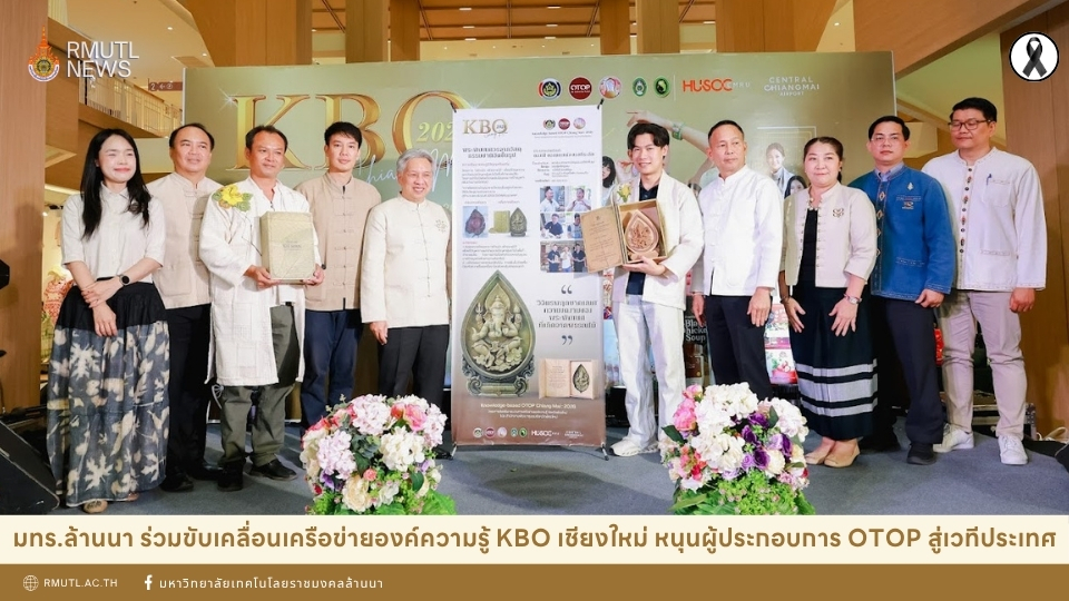 มหาวิทยาลัยเทคโนโลยีราชมงคลล้านนา ตอกย้ำบทบาทสถาบันอุดมศึกษาชั้นนำด้านวิชาชีพ เทคโนโลยี และการพัฒนาชุมชน ด้วยการมีส่วนร่วมอย่างต่อเนื่องในการยกระดับเศรษฐกิจฐานรากของประเทศ โดยมอบหมายให้ ว่าที่ร้อยตรีเกรียงไกร ศรีประเสริฐ บุคลากรสถาบันถ่ายทอดเทคโนโลยีสู่ชุมชน เป็นผู้แทนมหาวิทยาลัยเข้าร่วมการประชุมคณะกรรมการเครือข่ายองค์ความรู้ (Knowledge-Based OTOP : KBO) ครั้งที่ 2/2569 และร่วมพิธีเปิดกิจกรรมทดสอบตลาด เมื่อวันเสาร์ที่ 18 เมษายน 2569 ณ ลานกิจกรรมแกรนด์ฮอลล์ ชั้น 1 ศูนย์การค้าเซ็นทรัลเชียงใหม่ แอร์พอร์ต จังหวัดเชียงใหม่