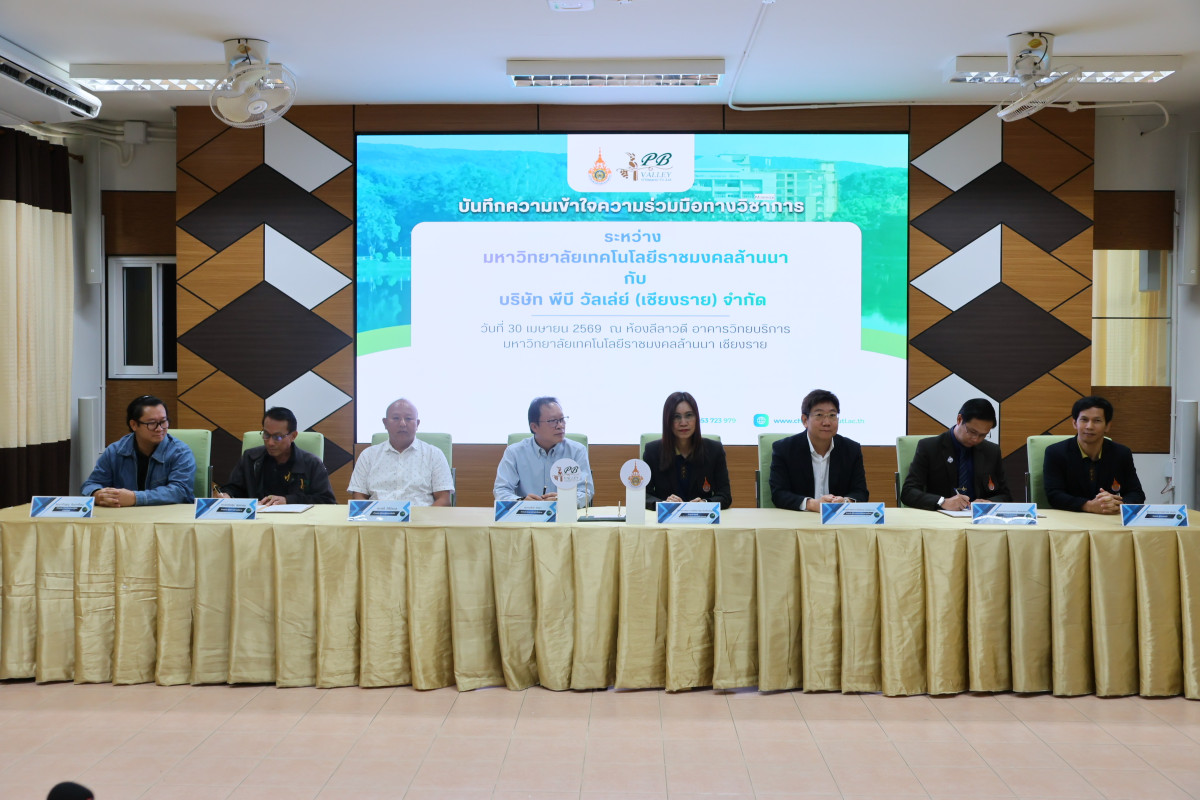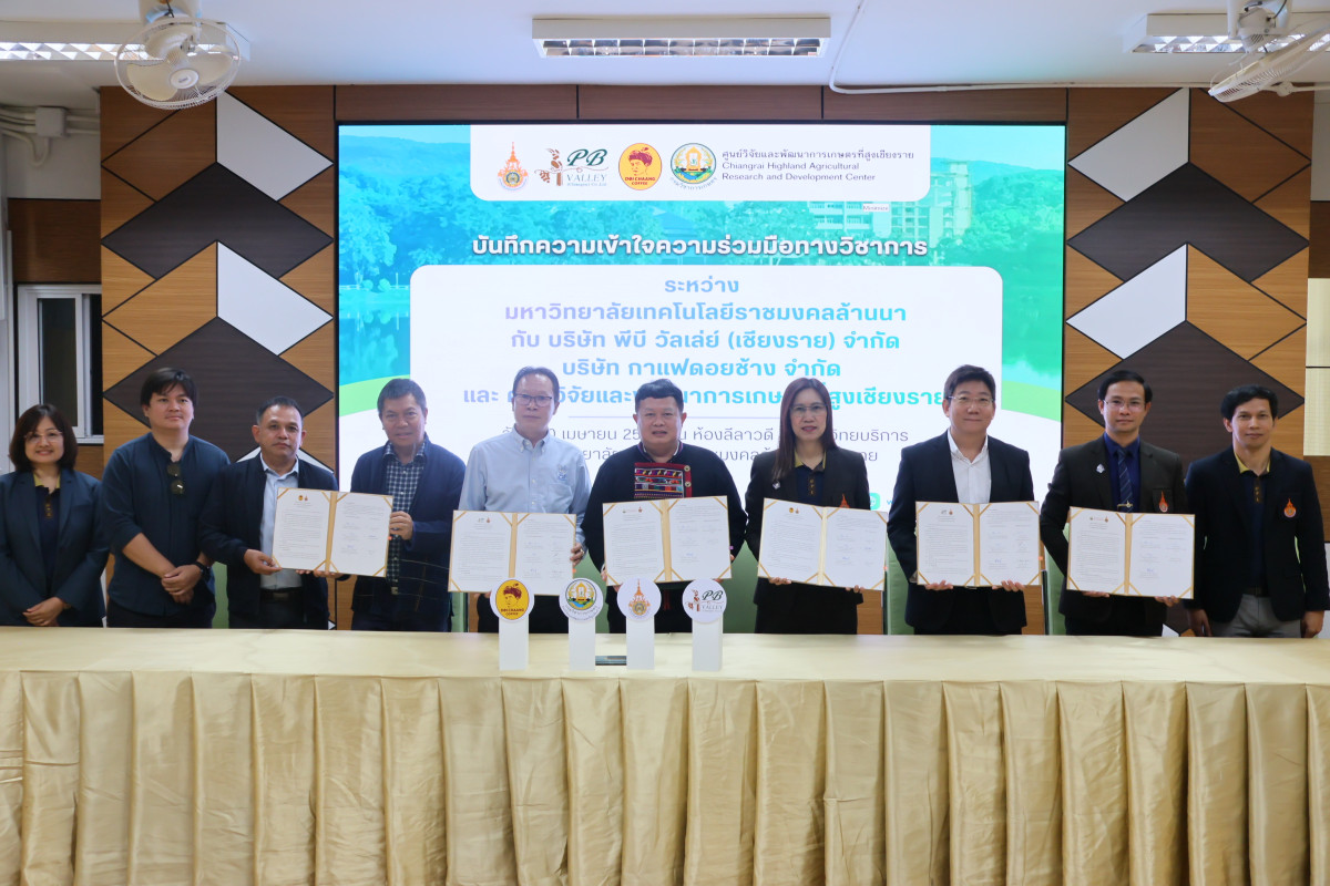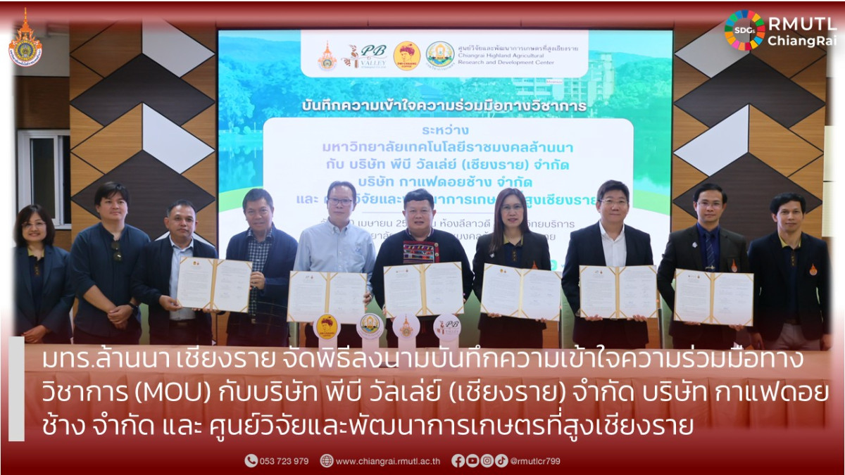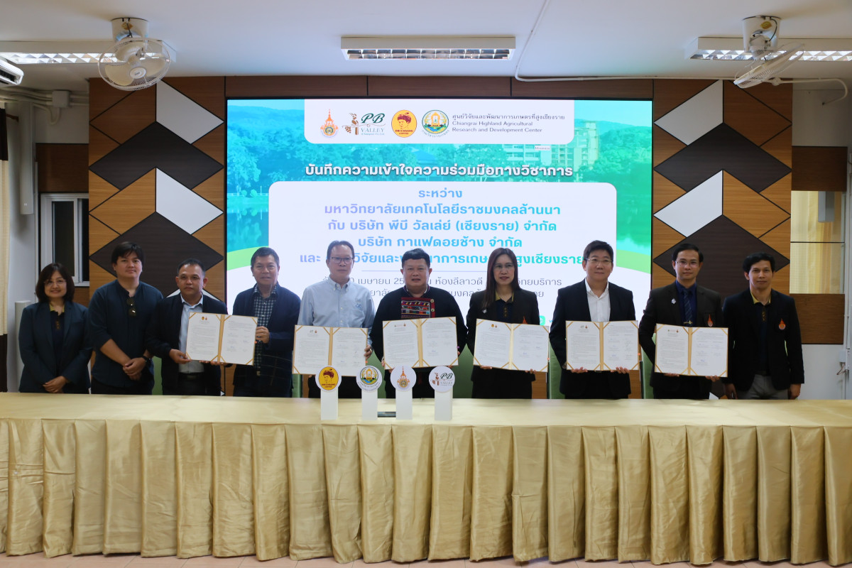 มหาวิทยาลัยเทคโนโลยีราชมงคลล้านนา เชียงราย จัดพิธีลงนามบันทึกความเข้าใจความร่วมมือทางวิชาการ (MOU) ร่วมกับ บริษัท พีบี วัลเล่ย์ (เชียงราย) จำกัด บริษัท กาแฟดอยช้าง จำกัด และศูนย์วิจัยและพัฒนาการเกษตรที่สูงเชียงราย เพื่อบูรณาการความร่วมมือระหว่างภาคการศึกษา ภาคเอกชน และหน่วยงานวิจัย ในการพัฒนาศักยภาพการศึกษาและกำลังคนสู่ภาคอุตสาหกรรม